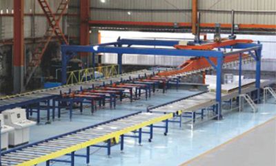 The continuous sandwich panel line features a hot air circulating heating furnace so that the temperature of polyurethane foaming and curing is maintained at the proper level, which results in high-quality sandwich panels.